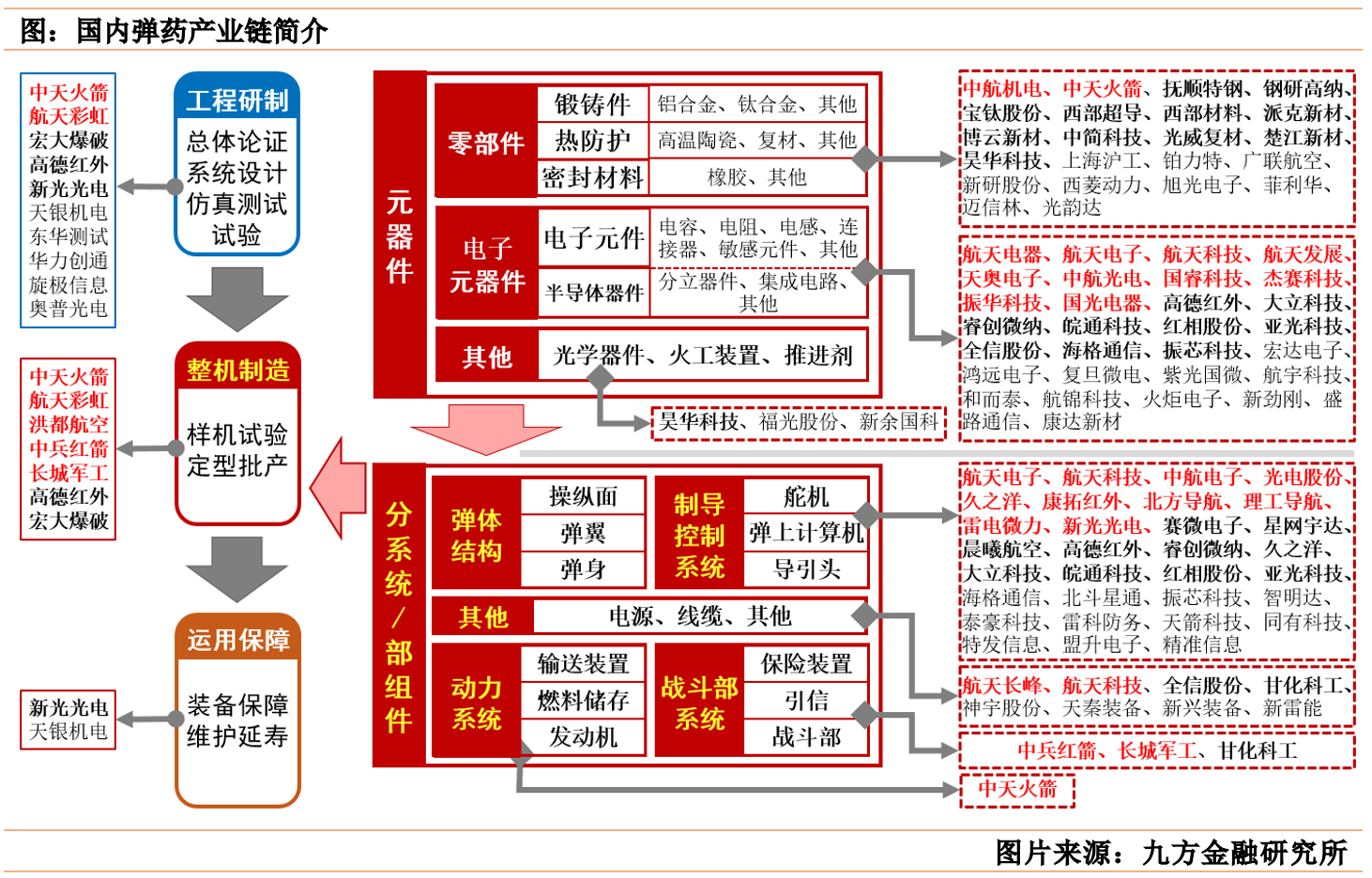 先进弹药是当前国防军工板块中率先明确景气恢复信号的赛道,后续的业绩表现值得持续予以高度重视。近年来,国内以远程火箭弹为代表的高性能先进弹药领域备受关注,海外军事冲突经验对此的影响十分显著。然而,由于包括中调在内的产业内外的种种原因限制,A股远火/弹药板块的成长主线一直表现平平。着眼年内,随着理工导航公告收到大额订货通知,国内远火与高精制导弹药行业的生产节奏提速与批量交付浪潮很可能将在2024年开启。