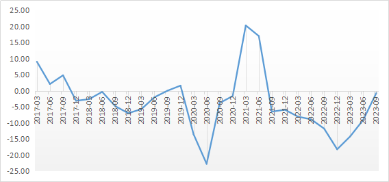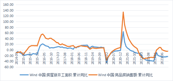 地产端数据目前还是没有见到特别的改善。截止10月份数据,房屋新开工面积同比-23.2%,商品房销售额同比-4.9%。国内地产端的压力,也导致大量化工产品和建材需求萎靡。