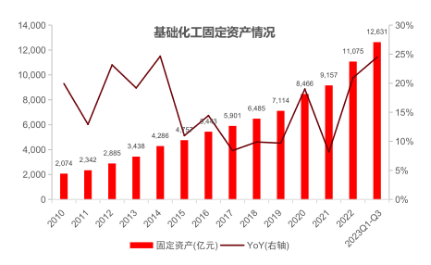 化工行业的本轮大规模资本开支始于2020年下半年,至2022年下半年开始有所放缓,扩产力度大幅超过前轮密集扩张期。