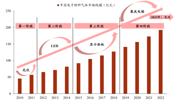 2022年全球电子特气市场规模为50.01亿美元,同比增速在10%以上,预计到2025年,全球电子特气市场规模将超过60亿美元。按照该预测值计算,2022-2025年均增速超过6%,行业规模增长空间较大。