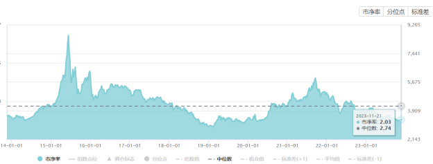 化工行业目前整体估值约为2.03倍PB,而历史估值中枢在2.74倍PB,目前的估值水平还是处在行业的历史中枢下方,接近历史底部区间,化工行业历史估值底部在1.6倍PB左右。