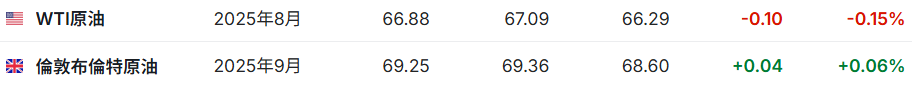 3.截至发稿,WTI原油跌0.15%,报66.88美元/桶。布伦特原油涨0.06%,报69.25美元/桶。