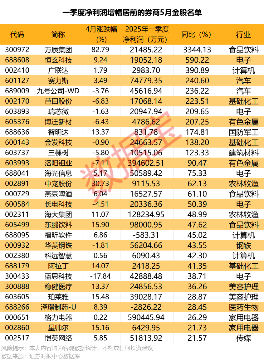 5月金股曝光!最高增超3344% 11股业绩翻番!