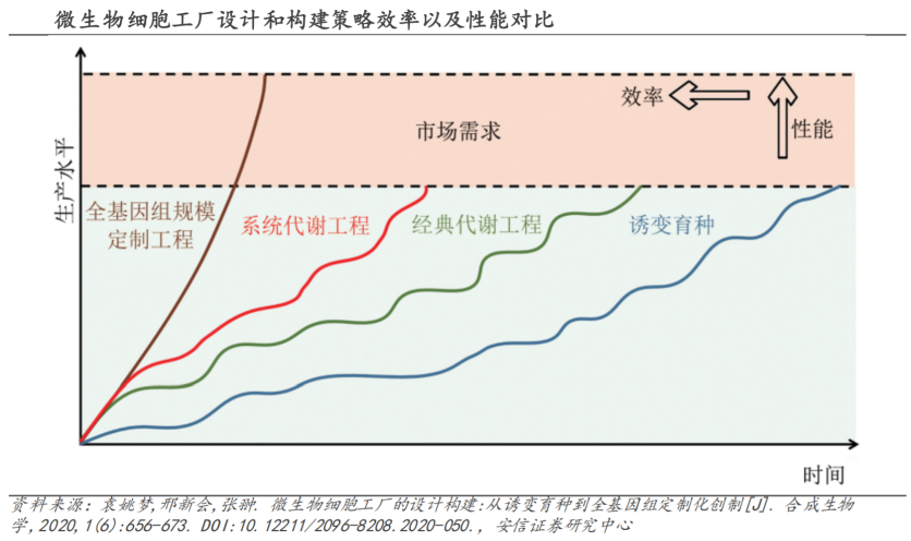 生产细胞的设计与构建采用工程学“自下而上”的思维,汇聚了基因工程、线路工程、代谢工程等多个学科的技术。
