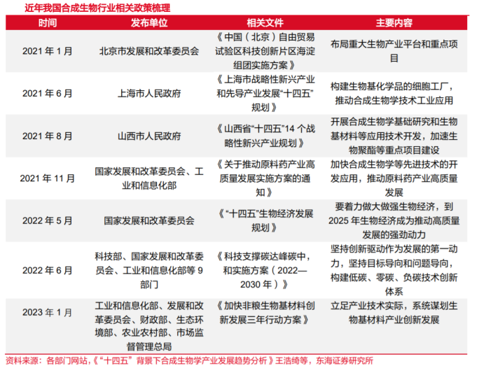 近年来,国内各地也陆续出台合成生物学相关政策鼓励生物制造产业的发展。