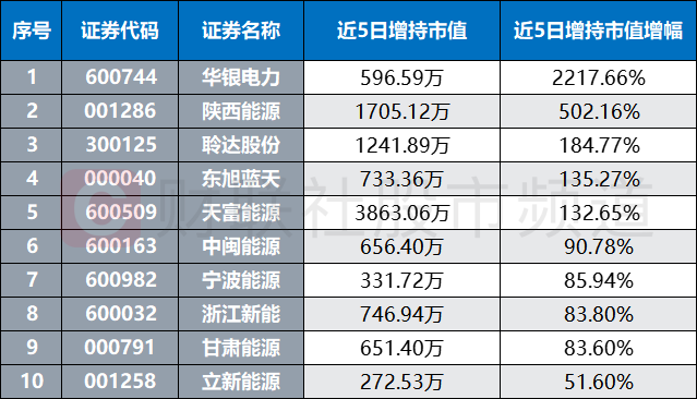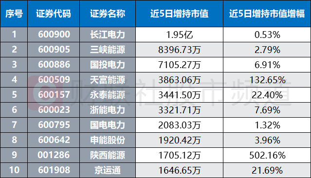 注:北向资金近5日增持市值增幅居前的电力股(截至6月21日)