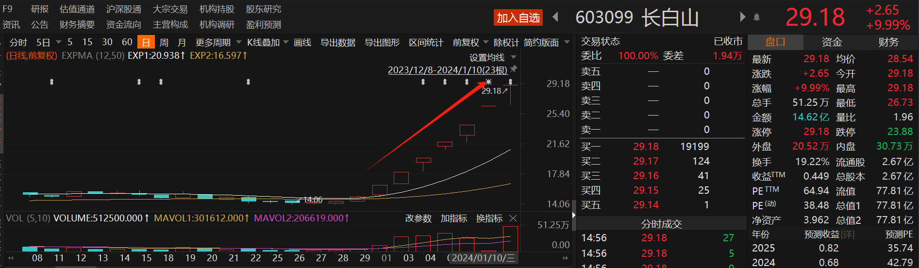 哈尔滨旅游热度不减,冰雪经济活跃依旧,拥有长白山三个景区道路运输独家经营权的长白山收盘实现7连板,紧抓东北旅游旺季策划营销活动的中兴商业斩获3连板,辽宁地区唯一旅游上市公司大连圣亚和公司地址位于哈尔滨市的龙江交通周二收盘分别5连板和4天2板。