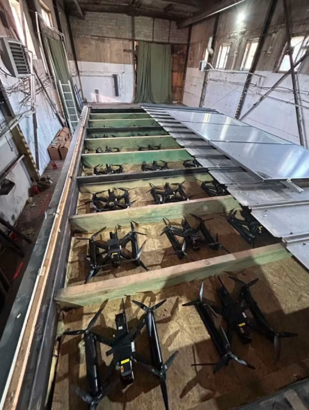 根据乌克兰情报官员披露的细节,此次行动在后勤保障方面极具挑战性:先通过秘密渠道向俄境内输送FPV无人机,后转运移动木制伪装装置。在俄境内,无人机被隐藏于卡车装载的木质结构顶棚下,待命期间保持静默,最终通过远程激活实施打击。