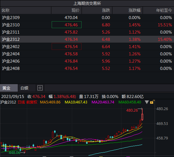 另外,黄金期货主力合约盘中一度摸高480元/克的年内新高。中国黄金协会数据显示,今年上半年全国黄金消费量554.88吨,同比增长16.37%,其中黄金首饰消费量368.26吨,同比增长14.82%。