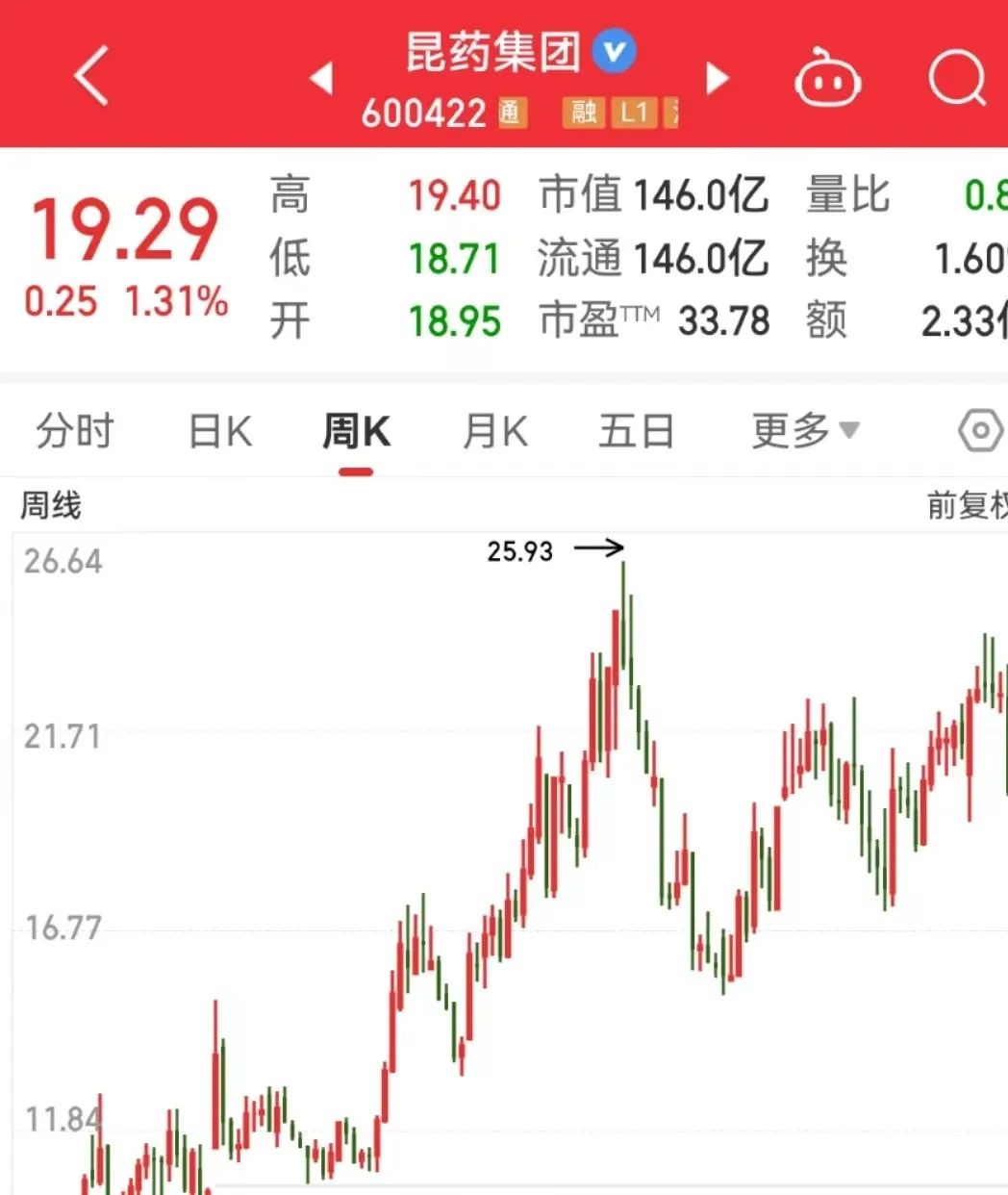 昆药集团关注度最高