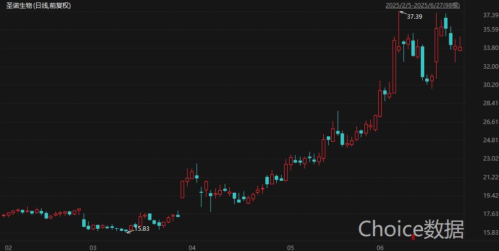 主营多肽原料药和制剂产品的圣诺生物6月19日发布业绩预增公告,其股价次日收涨超15%。公司预计2025年半年度实现归母净利润7702.75万元至9414.48万元,同比增加253.54%至332.10%。圣诺生物表示,公司紧跟多肽行业发展趋势,持续拓展国内外营销市场,加大产品销售力度。2025年上半年,公司多肽原料药业务表现较好,使得业绩同比实现较大增长,净利润同比显著提升。