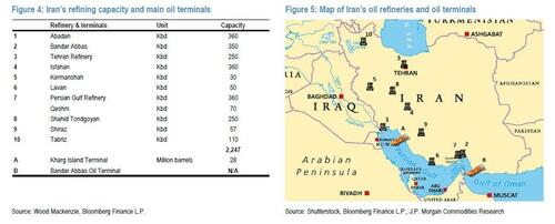 伊朗的炼油与出口能力:伊朗拥有庞大的炼油设施,处理能力为220万桶/日,以及大规模的石油出口基础设施。其主要石油出口终端位于波斯湾的哈尔克岛。然而,打击该设施不太可能得到美国政府的支持,因为后者会警惕破坏石油市场。