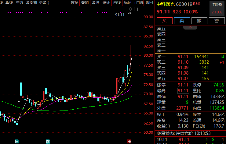 算力方向持续走强!军工龙头直线爆拉!四连板达成
