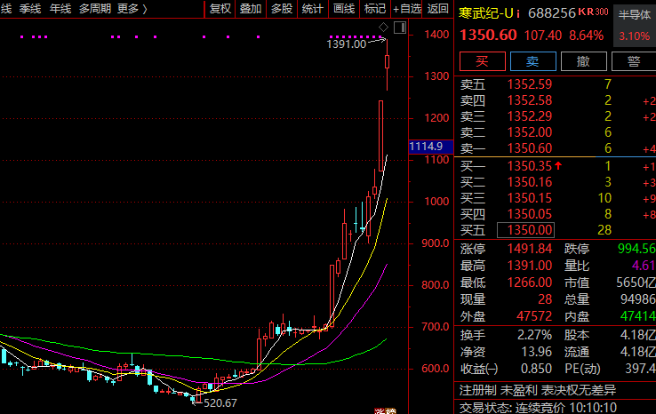 8月25日,A股三大指数集体高开。科创50一度涨超5%,寒武纪股价突破1300元。