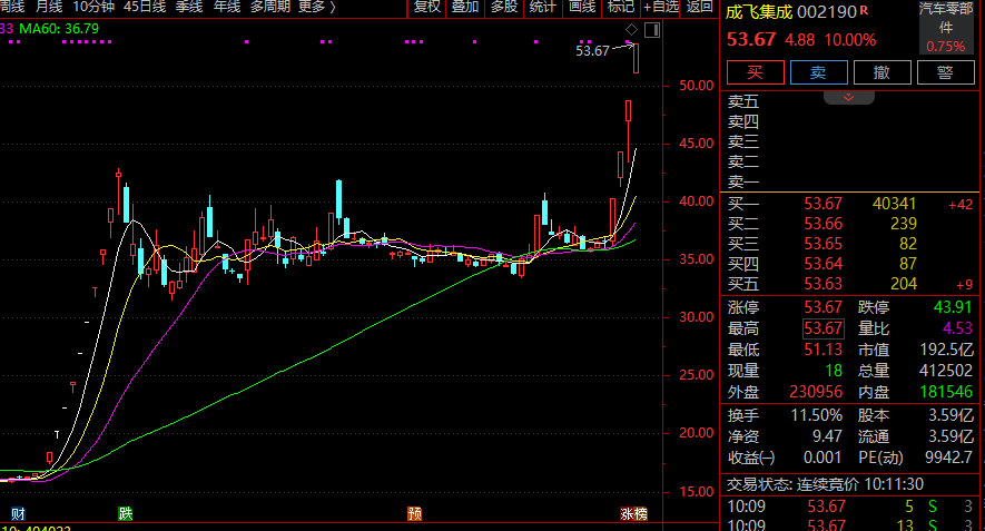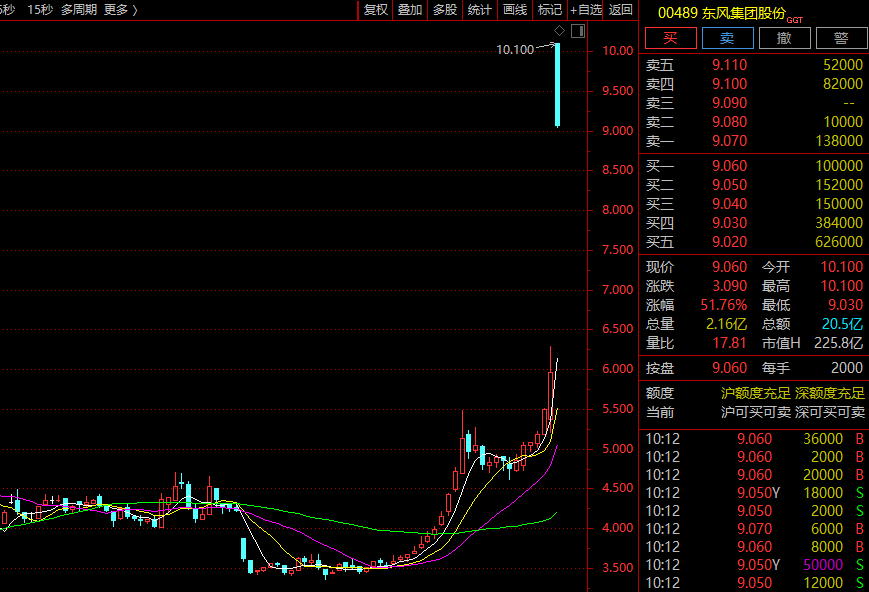 东风集团股份今日复牌,早盘一度涨近70%,截至发稿,该股涨超50%。