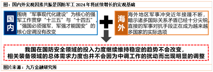 综合近两周的新闻报道与市场消息,上述两个方向上都出现了明确的验证信号:其一,中央军委于日前举行了近年第四次上将晋衔仪式,市场中对于中调工作将迎来尾声、军事现代化建设重新加速的预期情绪显著抬头;其二,美日两国在上周末公布的军费预算规模双双创下历史新高,围绕亚太地区的军事安全准备紧迫性再度显现,市场对于军工需求回归的确定性预期迅速凝聚。随着宏观层面因素的边际好转,我们更加相信,2024年的国防军工大概率将重拾并延续面向“建军百年奋斗目标”的发展势头,军工板块景气成长的高确定性基础坚实。