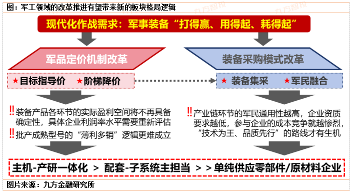同时,结合我们年内的调研交流见闻,国内军工产业领域持续推进深化的军品定价机制改革(目标指导价、阶梯降价机制等)与装备采购模式改革(装备集采、公开招标/军民融合等)对于产业链相关上市公司的利润率预期造成了根本性的冲击。