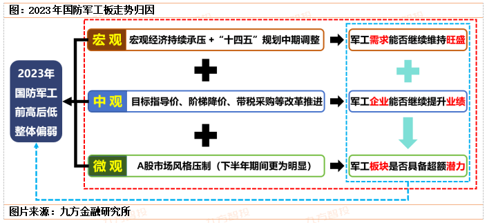 中观层面上,军工板块利空出尽的同时也有望迎来投资思路的转变落地。首先,随着《中华人民共和国国民经济和社会发展第十四个五年规划和2035年远景目标纲要》实施中期评估报告于日前正式发布,年内市场高度关注的中期调整(简称“中调”)工作也正式迎来尾声节点;军工行业板块在2023年的最大中观层面压制因素有望开始快速消褪出清。
