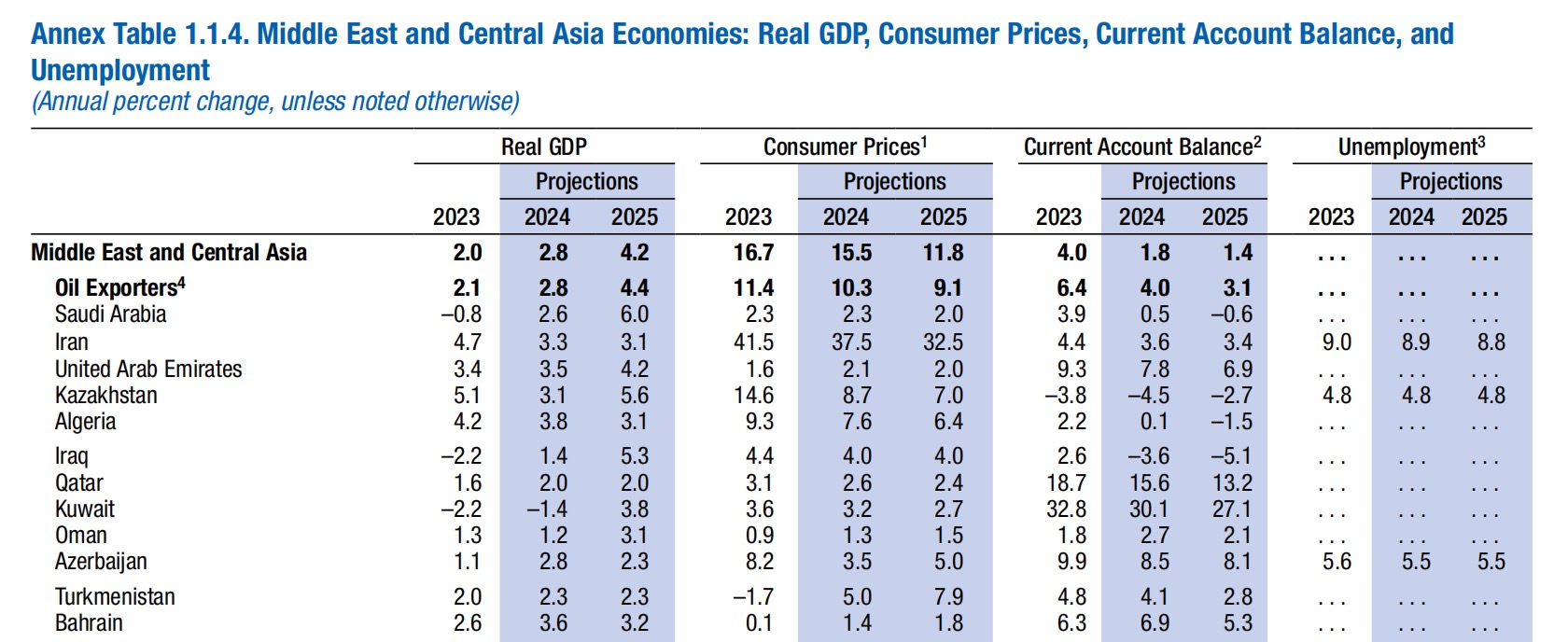 报告称,预计2024年和2025年中东和中亚地区总体经济增速分别为2.8%和4.2%。