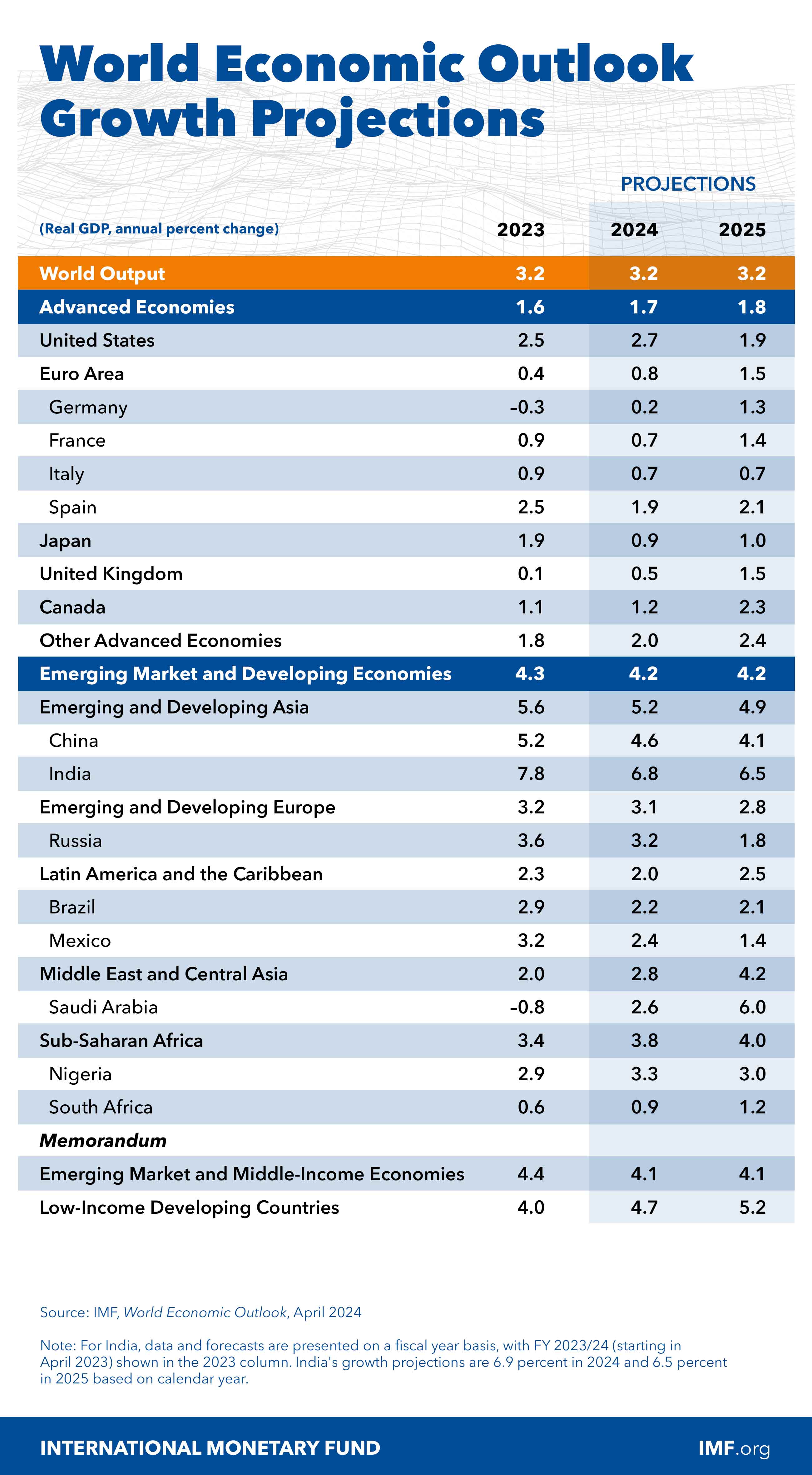 注:2024年4月世界经济展望增长预测 来源:IMF