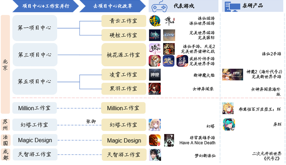图:完美世界组织架构及在研产品(截至2025年1月17日)