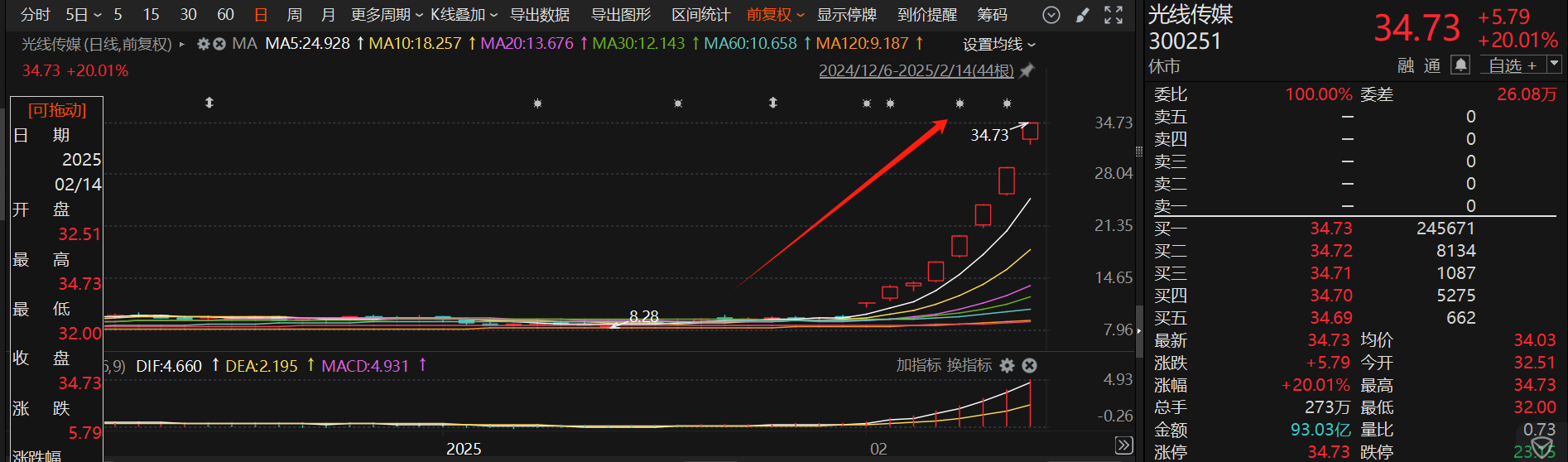 开源证券方光照2月14日研报指出,光线传媒为国内动画电影领军企业,先后推出《哪吒》系列、《深海》等优质影片。《哪吒1》于2019年暑期档上映,实现票房50.35亿元,推动光线传媒2019Q3实现收入12.9亿元,实现归母净利润10.0亿元。根据推算,光线传媒在《哪吒 2》 票房分成比例约为19.6%-20.9%,以最终票房达120亿计算,光线传媒有望实现23.6-25亿元分成收入。储备内容方面,公司计划构建“中国神话宇宙”体系,动画储备项目包括《三国的星空》《西游记之大圣闹天宫》《三国之赤壁之战》《牡丹亭之 游园惊梦》《江湖豪客传》《新西厢记》《去你的岛》《大鱼海棠2》《姜子牙2》《茶啊二中2》《昨日青空2》《大护法2》等,正在各自环节中稳步推进。