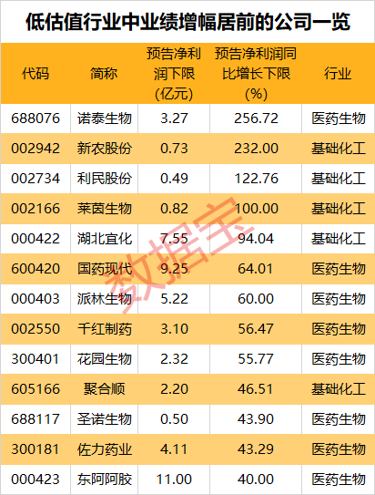 其中,农林牧渔、轻工制造、环保、医药生物、社会服务、基础化工6大低估值行业获机构看好,一致预测指数成份股今年净利润增速均超25%。
