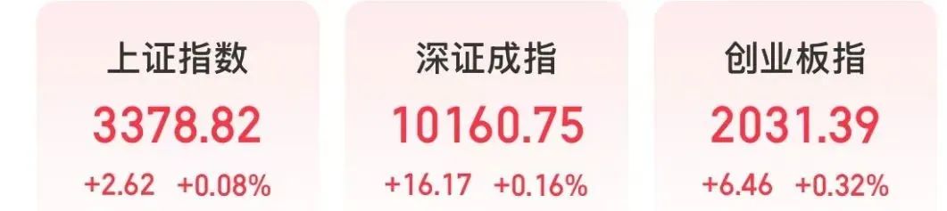 上午收盘,上证指数上涨0.08%,深证成指上涨0.16%,创业板指上涨0.32%。