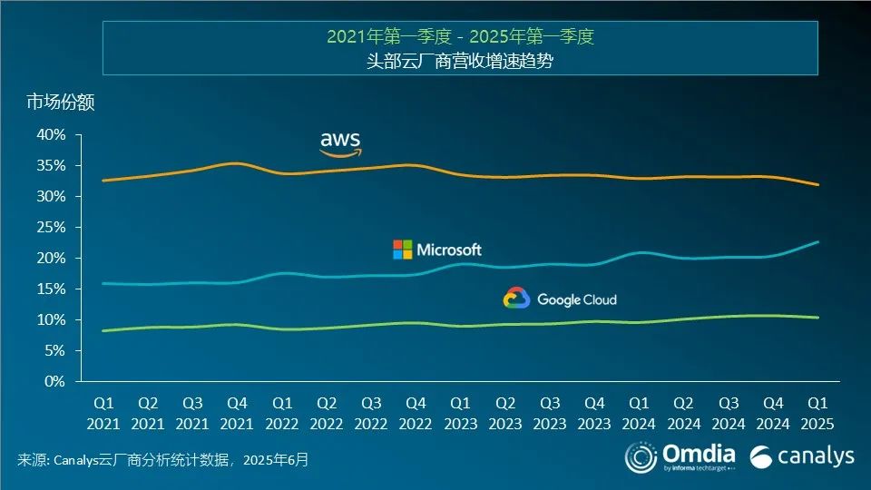 整体来看,2025年第一季度,全球云服务市场保持稳健增长,聚焦于两大战略重点:一是加速云迁移,包括将更多工作负载转移至云端,或重启原本搁置的本地系统转型;二是积极探索生成式AI的应用。生成式AI的崛起高度依赖云基础设施,反过来也进一步强化了企业的云战略,加快了迁移进程。