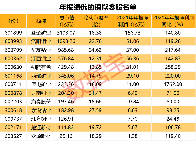 业绩方面,盛屯矿业、铜陵有色、西部矿业、华友钴业、江西铜业等9股的2021年归母净利润同比翻倍增长。