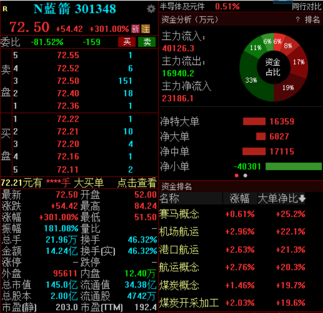 又一新股大涨!N蓝箭盘中大涨360%触发二次临停