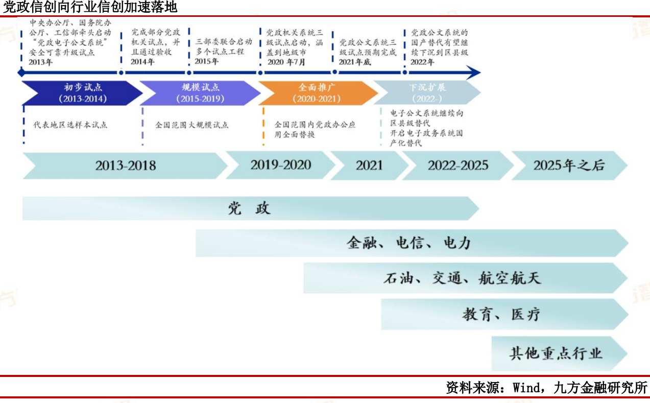 首先,信创政策逐步向实。继2023年7月28日,中国信息安全测评中心发布《安全可靠测评工作指南(试行)》;8月4日至7日,财政部亦陆续发布了多款软硬件的《政府采购需求标准》。