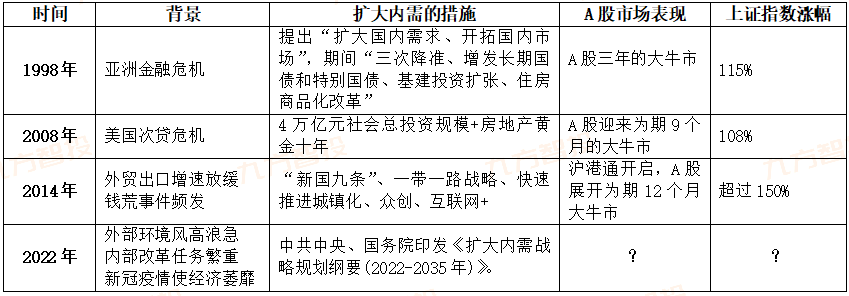 过去30年来高层只提出了3次扩大内需战略,每次都造就一轮牛市。