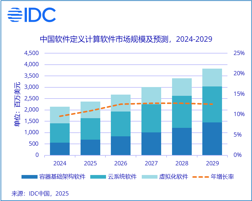 IDC:2024年中国软件定义计算软件市场规模达21.4亿美元 同比增长9.6%