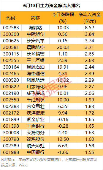 从个股来看,今日共有24股主力资金净流入均超1.5亿元,其中11股主力资金净流入均超2亿元。