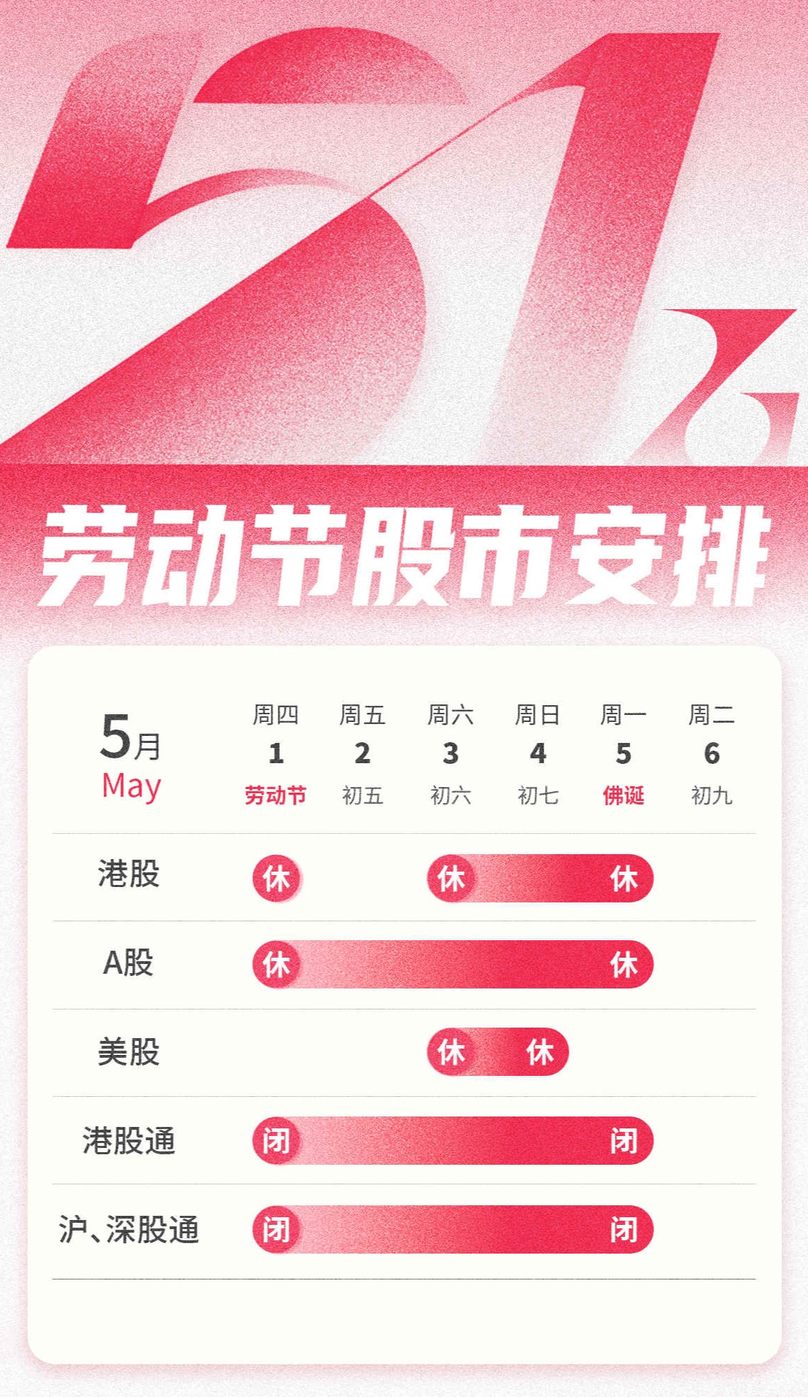 交易提示:劳动节假期、佛诞将至 港股5月1日、5月5日休市
