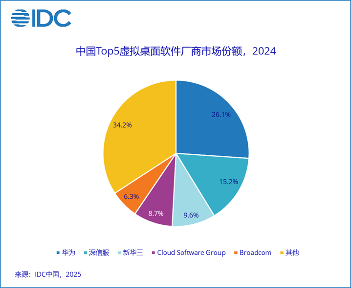 2024年中国VCC软件市场规模达到3.4亿美元,市场格局明显变动,主要国际厂商Citrix退出中国市场,Broadcom收购VMware后将其桌面业务出售并独立运营等重大调整导致国际品牌市场占有率明显下降,排名前三的厂商中已没有国际厂商的身影。这种趋势预计将在未来持续深化,国际品牌的市场份额会进一步萎缩。与此同时,本土厂商持续加强技术演进以巩固市场地位:华为云桌面推出升级版HDP2.0协议及智能助手强化用户协作与体验;深信服引入AMD vGPU资源灵活切分方案,优化3D应用虚拟化功能;新华三持续提升远程及弱网环境协议优化,完善国产化兼容性等。