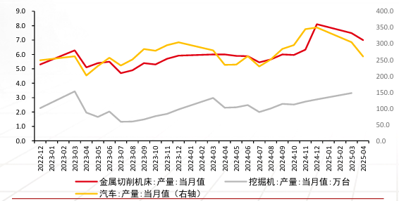 2024年3月,国务院发布推动大规模设备更新和消费品以旧换新行动方案,全面覆盖生产端、服务端、消费端及物流端,年投资规模超5万亿元。机床、挖掘机是工业生产机械的典型代表。上一轮机床消费高峰期发生在2010-2014年,以10年更新周期计算,现阶段正进入新一轮换代周期;2015年是挖掘机上轮周期底点,按挖掘机第8年为更新高峰期测算,2023年更新需求触底,2024年开启新一轮更新周期,挖掘机产量自2024年下半年以来持续改善。本次大规模设备更新加速机械行业回暖,整体从高频数据来看,从去年9.24以来,硬质合金需求回暖。
