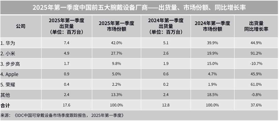 2025年第一季度中国腕戴市场表现