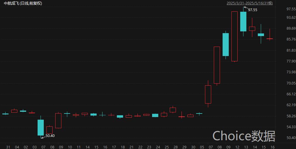 盘面上,A股军工板块近期表现强势,截至周五收盘,中航工业旗下兼营航空零部件加工的成飞集成录得8连板,主营包括航空航天零部件制造业务的利君股份录得8天7板,收购成都航飞切入航空零部件精密加工与装配领域的通达股份录得2连板。