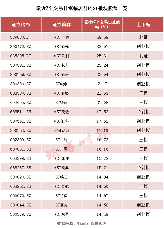 ST板块“七连阳”!逾八成股票强势上涨 翻倍股频出