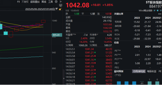 行情数据显示,自6月23日开始,表征ST板块走势的万得ST板块指数已录得“七连阳”,上述区间累计涨幅达4.74%,超过同期上证指数和深证成指的涨幅。