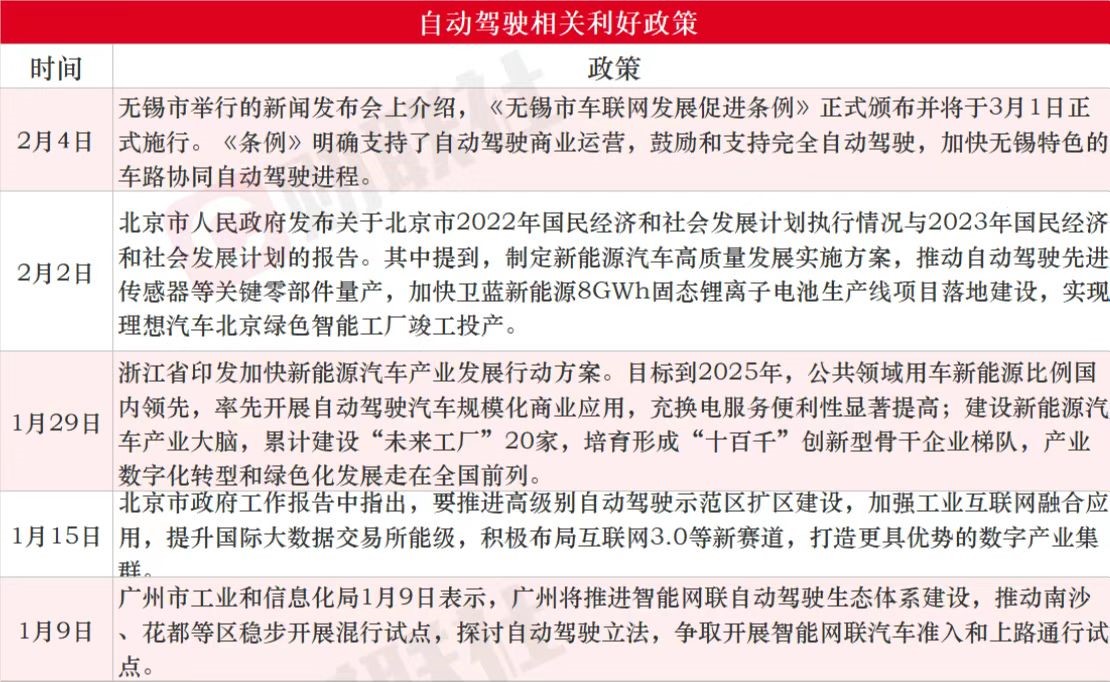 自动驾驶产业近日频获政策支持。据不完全统计,1月9日以来无锡、北京、广州、浙江等地都出台了相关鼓励政策。