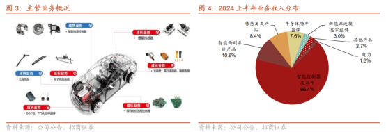 公司是智能电控领域行业龙头,市占率有望稳步向上。公司在智能电源控制器产品有数十年的经验积累,并在产业链垂直整合上具有强大竞争优势,综合成本较国际同行有突出优势带动公司市占率不断提升。在主机配套市场,公司与上汽集团、长安汽车、奇瑞汽车、中国重汽等国内外知名汽车厂商建立了稳定配套关系;在售后服务市场,公司产品进入奔驰、宝马、奥迪等中高端汽车的维修体系。根据我们计算,2024年公司智能控制器产品前装市场全球市占率可达27.4%,处于行业龙头地位。2024年,公司智能控制器产品营收14.2亿元,同比+26.7%;毛利率33.6%,维持较高水平,将为公司贡献稳定净利润。