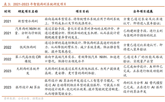 公司积极推进研发,雨刮、橡胶、算法等全面研发。为巩固公司在行业的地位,打破国外及合资品牌垄断,近3年公司加大研发力度,在智能雨刮系统领域推出众多研发项目。