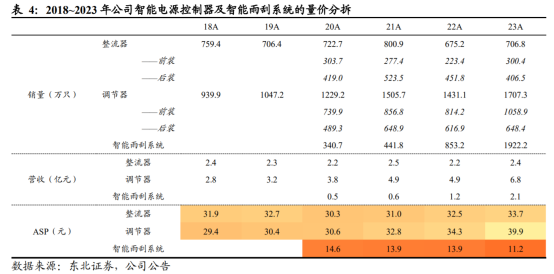 在智能电源控制器产品细分领域,公司行业龙头地位突出。智能控制器产品综合销量连续多年位居行业第一。除2022年外,车用整流器产销均保持在700万只以上,毛利率30%以上;2023年销量706.8万只,营收2.4亿元;车用调节器产销呈上升趋势,毛利率33%以上,2023年销量达1707.3万只,营收达6.8亿元。2024年上半年,智能控制器及部件营业收入6.8亿元,占营业收入66.4%,较上年同期增长36.1%。