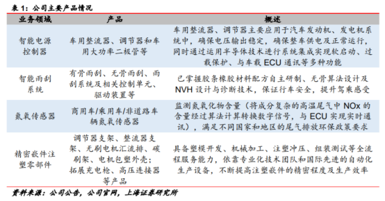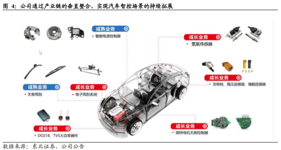 成长业务:1)氮氧传感器,2)充电枪、高压连接器,3)微特电机无刷控制器,4)电子雨刮系统等。