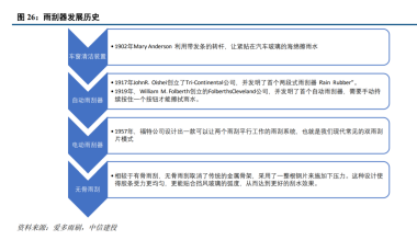 公司智能雨刮系统产品主要由控股子公司云睿电器生产、销售及研发。云睿电器成立于2013年,专注汽车雨刷、雨刷臂、雨刷电机。公司自成立以来,一直将雨刷产品定位于中高档乘用车整车配套市场,以国内外新车配套市场为主,欧美售后市场为辅。公司拥有亚洲最大的雨刷生产基地,占地122000平方米,雨刮年产能达8000万支。云睿团队拥有30余年丰富的汽车雨刮行业管理经验,其中研发人员80余人,博士学历15人,研究生学历20余人,拥有着自主开发和设计验证的能力。