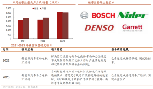 与整车厂商建立长期稳定的战略合作配套关系,积累大量优质客户资源。在主机配套市场,公司持续供货于汽车厂商、整车动力智能控制总成厂家和一级配套汽车生产制造企业,包括长安福特、上汽通用、长安汽车、上汽乘用车、广汽集团、北汽集团、东风日产、长城汽车、吉利汽车、江淮汽车、奇瑞汽车、江铃汽车、长安铃木等知名汽车厂商,并已进入全球奔驰、宝马、奥迪供应体系。
