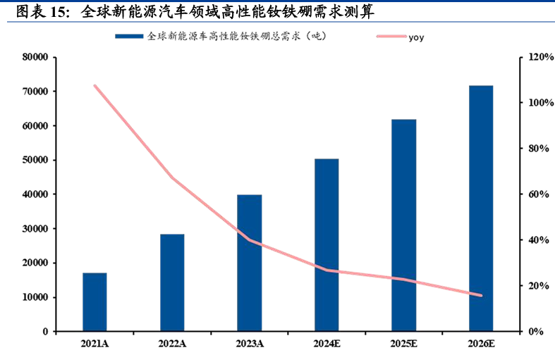 中信证券分析指出,新能源汽车单车钕铁硼用量约3-5千克。假设全球2025年新能源汽车产量达2300万辆,对应钕铁硼需求将达7万吨。